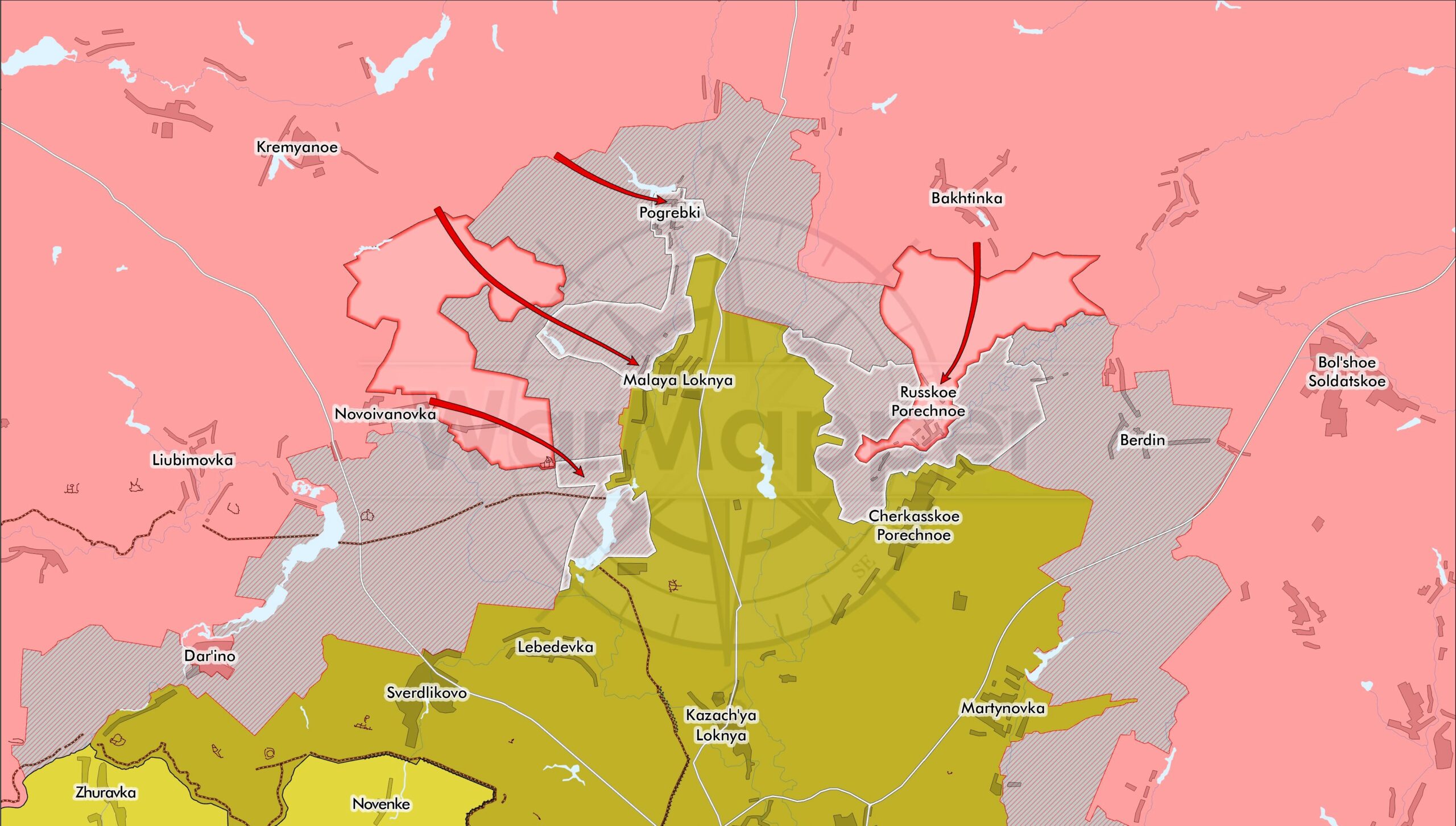 • Venemaa on jätkanud Kurski kaotatud alade tagasivõtmist. Pogrebki on taas vaidlustatud. Kaugemal idas on Venemaa võtnud kontrolli tagasi Russkoje Poretšnoje üle.