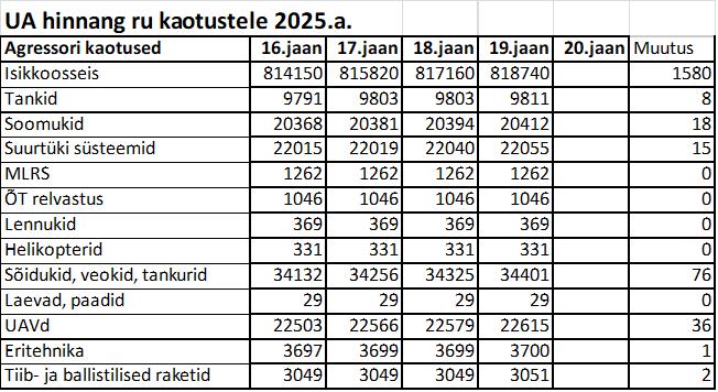 Operatiiv- ja sõjaga seotud info 19. jaanuaril