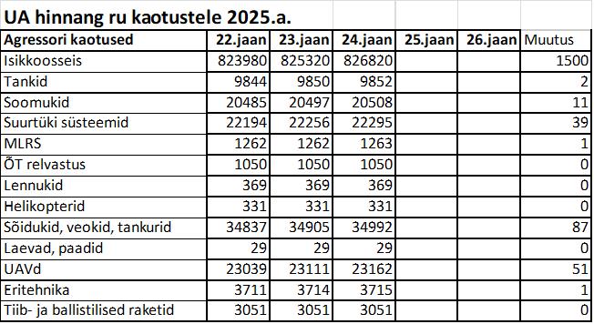 Operatiiv- ja sõjaga seotud info 24. jaanuaril