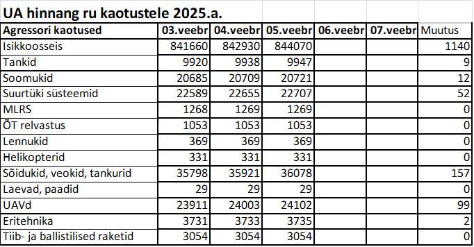 Operatiiv- ja sõjaga seotud info 05. veebruaril