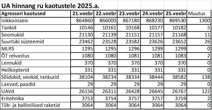 Operatiiv- ja sõjaga seotud info 25. veebruaril