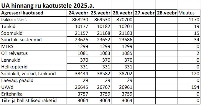 Operatiiv- ja sõjaga seotud info 26. veebruaril