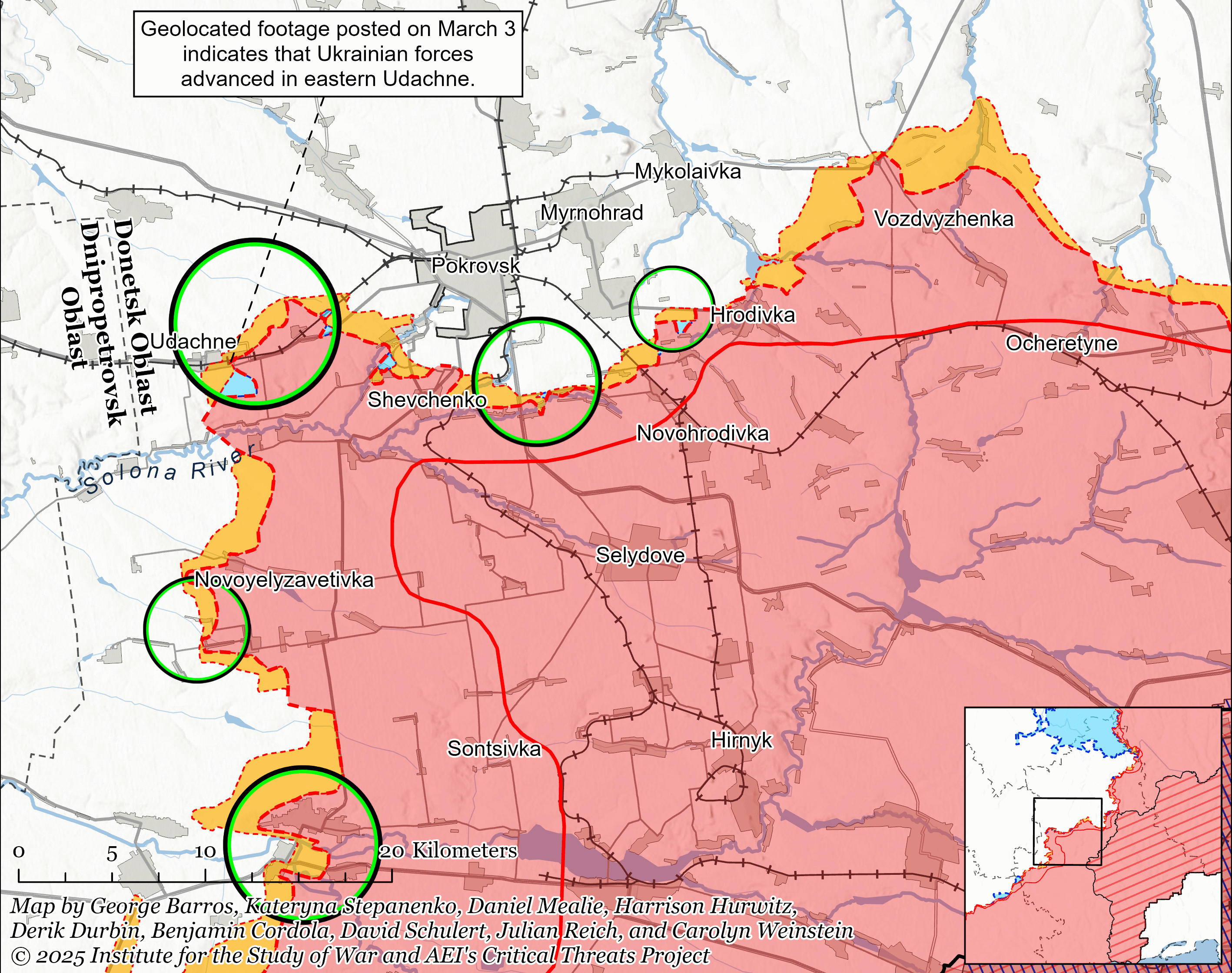 Vene väed edenesid hiljuti Lymani ja Pokrovski lähedal ning Zaporižžja oblasti lääneosas ning Ukraina väed edenesid hiljuti Pokrovski lähedal.