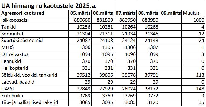 Operatiiv- ja sõjaga seotud info 08. märtsil