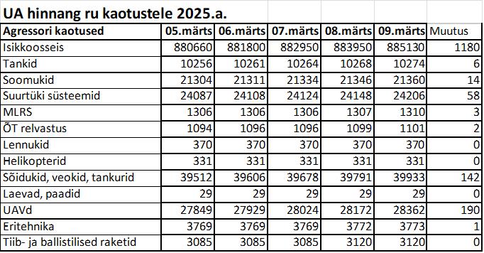 Operatiiv- ja sõjaga seotud info 09. märtsil