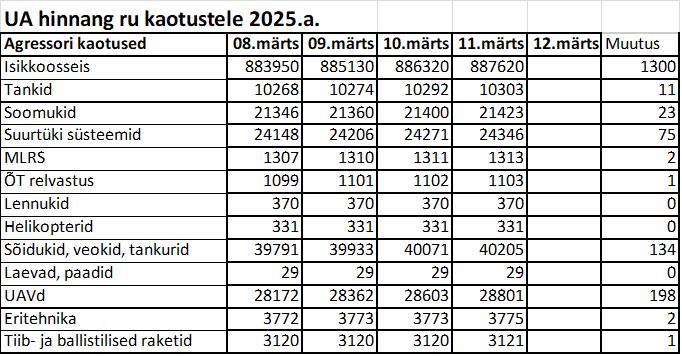Operatiiv- ja sõjaga seotud info 11. märtsil