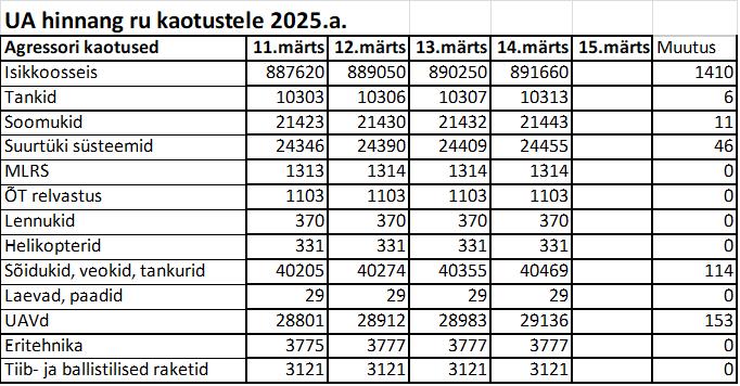 Operatiiv- ja sõjaga seotud info 14. märtsil
