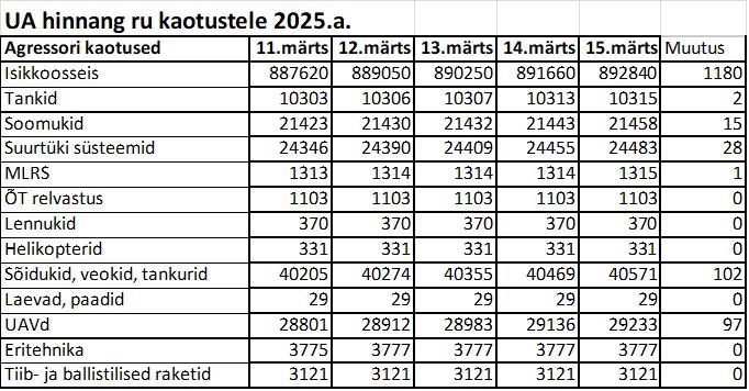 Operatiiv- ja sõjaga seotud info 15. märtsil