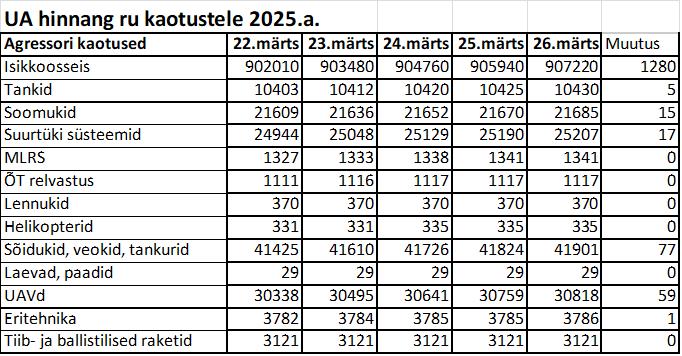 Operatiiv- ja sõjaga seotud info 26. märtsil