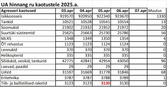 Operatiiv- ja sõjaga seotud info 06. aprillil