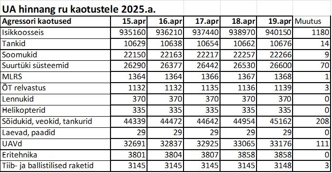 Operatiiv- ja sõjaga seotud info 19. aprillil