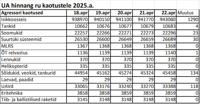 Operatiiv- ja sõjaga seotud info 22. aprillil