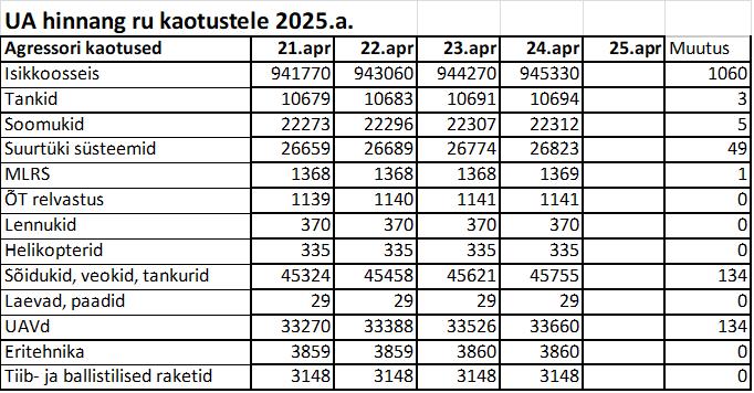 Operatiiv- ja sõjaga seotud info 24. aprillil