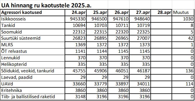 Operatiiv- ja sõjaga seotud info 27. aprillil