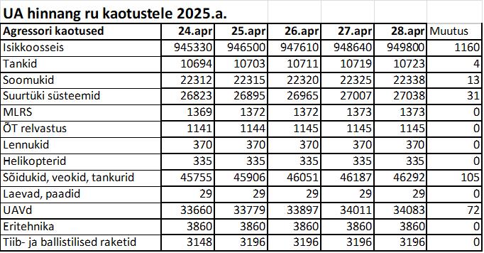 Operatiiv- ja sõjaga seotud info 28. aprillil