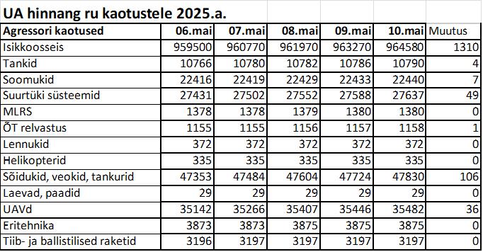 Operatiiv- ja sõjaga seotud info 10. mail