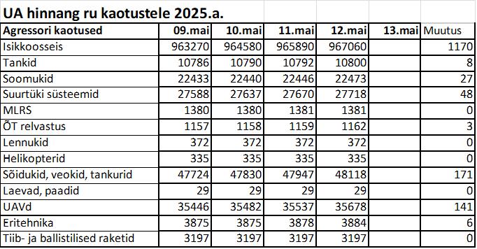 Operatiiv- ja sõjaga seotud info 12. mail