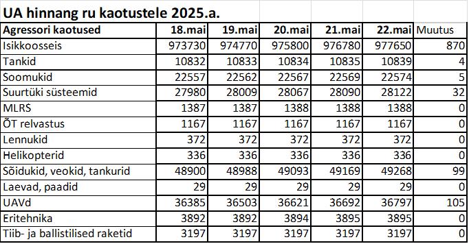 Operatiiv- ja sõjaga seotud info 22. mail