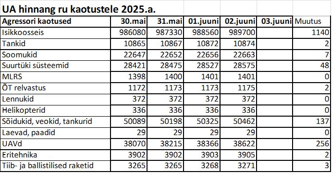 Operatiiv- ja sõjaga seotud info 02. juunil