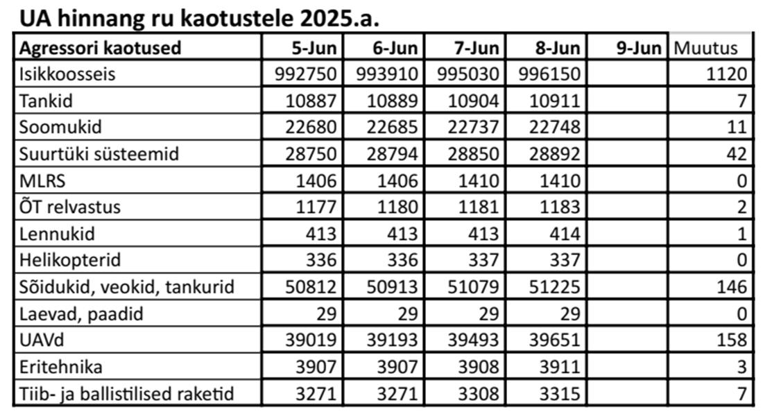 Operatiiv- ja sõjaga seotud info 08. juunil