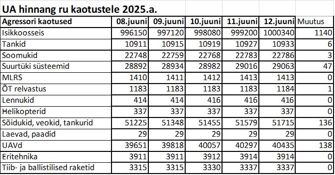 Operatiiv- ja sõjaga seotud info 12. juunil