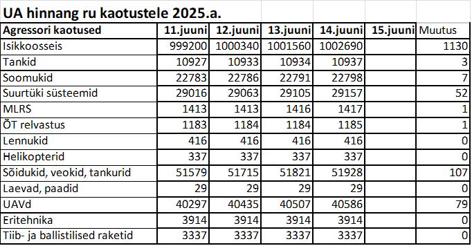 Operatiiv- ja sõjaga seotud info 14. juunil