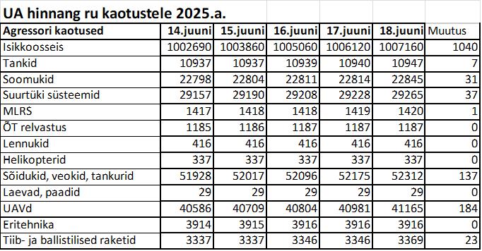 Operatiiv- ja sõjaga seotud info 18. juunil