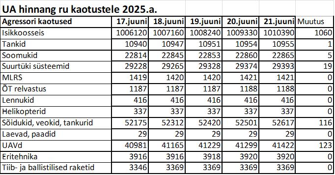 Operatiiv- ja sõjaga seotud info 21. juunil