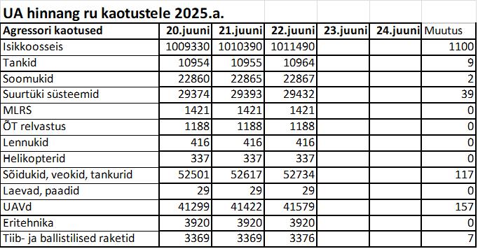 Peastaabi Operatiivinfo seisuga 21.06.2025 kell 22:00