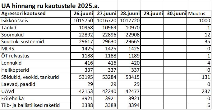Operatiiv- ja sõjaga seotud info 28. juunil