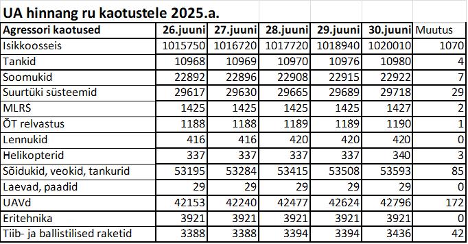 Operatiiv- ja sõjaga seotud info 30. juunil