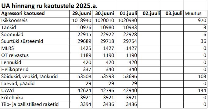 Operatiiv- ja sõjaga seotud info 01. juulil