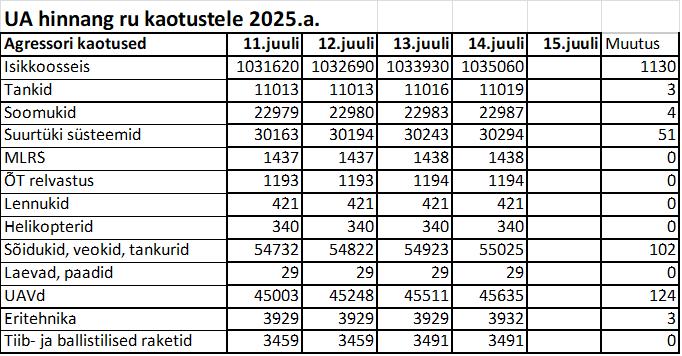 Operatiiv- ja sõjaga seotud info 14. juulil