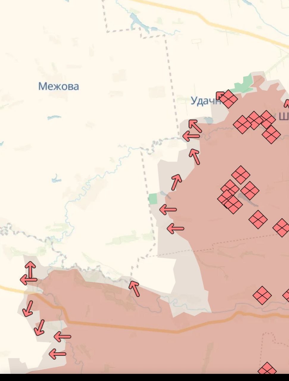 • AFU liikus Udachnest lõunas, samal ajal kui Vene väed jätkavad oma pealetungioperatsioone Rodõnske, Volodõmõrivka, Krasnõi Lõmani, Razini ja Mürne suunas.