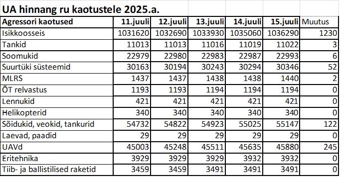 Operatiiv- ja sõjaga seotud info 15. juulil
