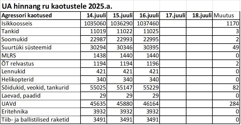 Operatiiv- ja sõjaga seotud info 16. juulil