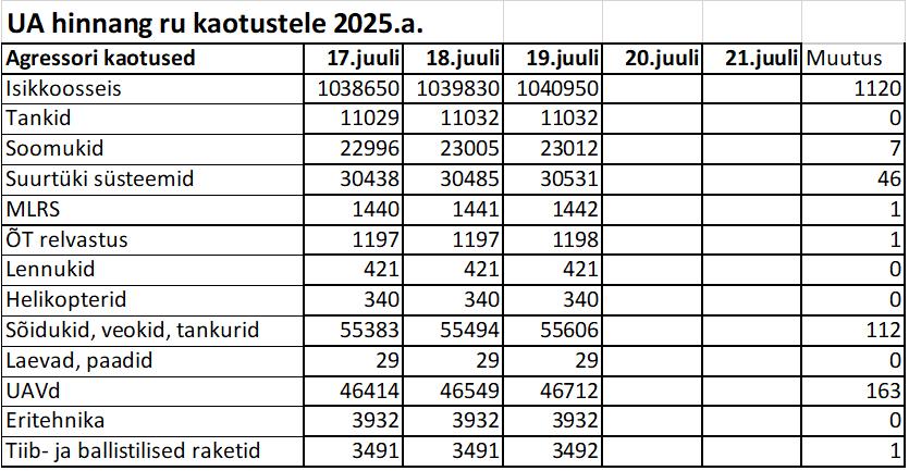 Operatiiv- ja sõjaga seotud info 19. juulil