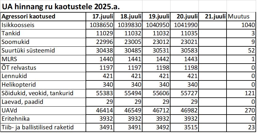 Operatiiv- ja sõjaga seotud info 20. juulil