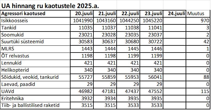 Operatiiv- ja sõjaga seotud info 23. juulil