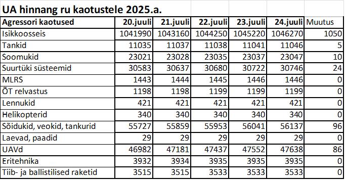 Operatiiv- ja sõjaga seotud info 24. juulil