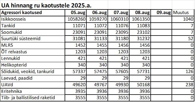 Operatiiv- ja sõjaga seotud info 08. augustil