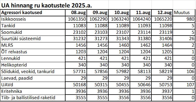 Operatiiv- ja sõjaga seotud info 12. augustil