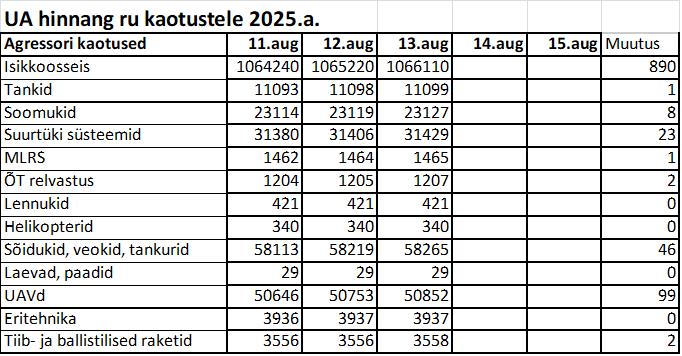 Operatiiv- ja sõjaga seotud info 13. augustil