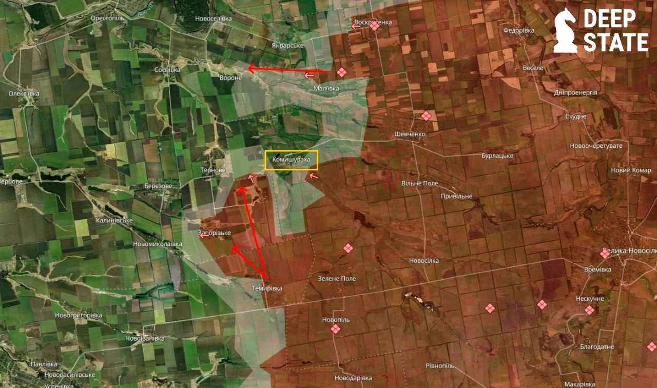 - DeepState: Vaenlane on pikka aega aktiivselt tegutsenud üsna suurel lõigul piki oblastite halduspiiri Dachne asula piirkonnast Temõrivkani, avaldades pidevat survet. Tasub märkida, et vaenlane praktiliselt ei kasuta tehnikat ning viib läbi rünnakuoperatsioone jalaväega, droonide ja muude tuletoetusvahendite toel. Sageli kasutatakse “lipu heiskamise” taktikat. Viimane neist oli üsna huvitav Andriyivka-Klevtsove asula (vana nimi Iskra) puhul. Vaenlane on juba mõnda aega läbi viinud lahinguoperatsioone nii Dnipropetrovski oblastis kui ka selle territooriumil. Täpsemalt öeldes on juba mitu nädalat aktiivsed sõjategevused toimunud Maliivka piirkonnas, kus vaenlane tungib sügavale territooriumile, püüdes Voronoes kanda kinnitada, ja kus 225. erioperatsioonide diviisi võitlejad on piirkonda puhastanud. Nüüd on nendele sündmustele lisandunud veel kaks asulat, kuhu vaenlane on sisenenud, praegu kindlustamas ja edasiliikumiseks jalaväge kogumas. Ja väärib märkimist, et midagi katastroofilist ei juhtunud, sest paljud neist, keda katsapi esmamainimine Dnipropetrovski oblastis muretses, kas unustasid või ei pööranud tähelepanu asjakohastele arengutele. Seetõttu ei pidanud ametlikud allikad kõiki neid sündmusi kiiremas korras ümber lükkama. Ainus tähelepanu, mis meediaruumis on, on katsapi tähelepanu, mis kedagi ei huvita. Vaenlane avaldab Zaporižžjale ja Novogeorgievkale survet Zeleny Pole ja Temõrivka küla poolt, mida algselt edasitungi registreerides peeti potentsiaalseks liikumiseks Hulyaipole suunas, mis aga ilmselgelt nii ei olnud, sest vaenlasel on võimalus selles piirkonnas edasi liikuda Komyshuvakha ja Maliivka “suurejoonelise” möödasõiduga, mida nad vallutada ei saa. Kaitsevägi teeb kõik endast oleneva, et vaenlast ohjeldada, olukorda stabiliseerida ja takistada vaenlase edasist sisenemist sisemaale. Kahjuks tunneb vaenlane praegu edupotentsiaali ja saadab rünnakule “lõputu” jalaväe.
