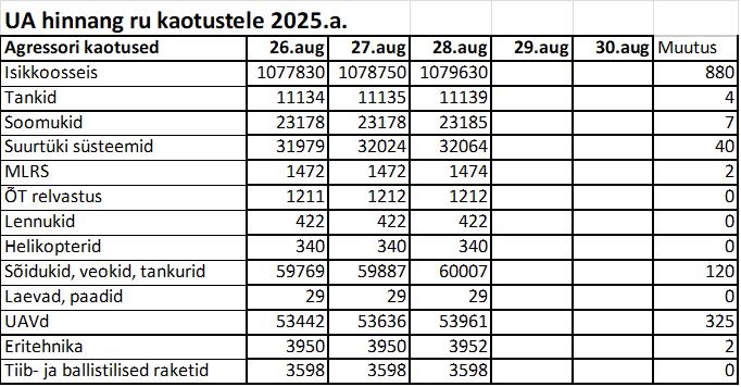 Operatiiv- ja sõjaga seotud info 28. augustil