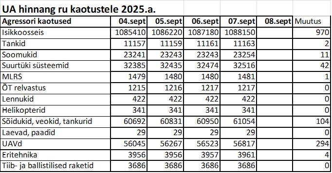 Operatiiv- ja sõjaga seotud info 07. septembril