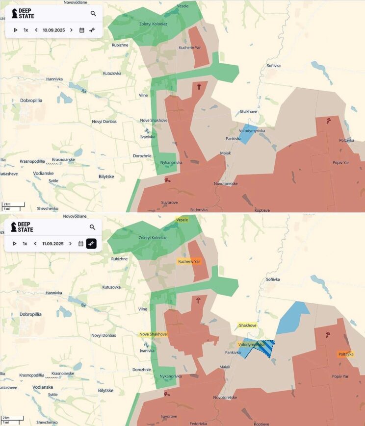 - Nii Venemaa kui ka Ukraina kanalid teatavad, et Venemaa pealetung Pokrovskist põhja pool on osutumas täielikuks katastroofiks. Ukraina väed hävitavad teadete kohaselt suure hulga venelasi, kes on rünnakuks toodud isegi Hersonist. Dobropillia suunas on Ukraina relvajõud taastanud hulga positsioone Volodõmõrivkast idas. Okupandid on täielikult välja aetud ka Majaki ja Pankivka asulatest. See tähendab, et põhja pool asuvad venelased on langenud järjekordsesse operatiivsesse piiramisrõngasse.