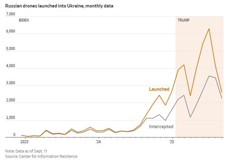 - Pärast Trumpi ametisseastumist on Venemaa intensiivistanud oma õhuterrori kampaaniat Ukraina vastu. 2025. aasta juulis lasi Venemaa välja 6300 drooni, võrreldes 426 drooniga 2024. aasta juulis.