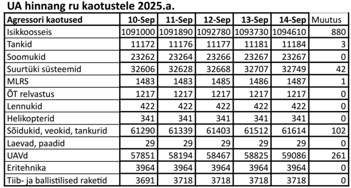 Operatiiv- ja sõjaga seotud info 14. septembril