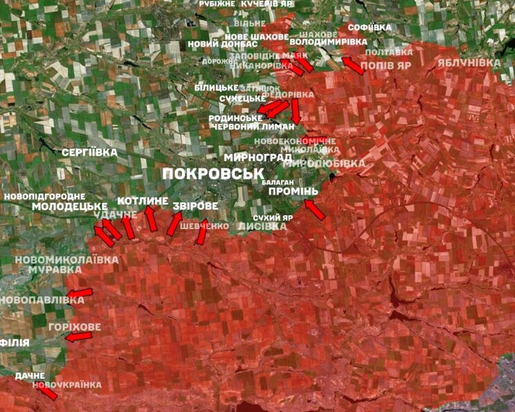 Dnipropetrovski oblastis on lastega perede sundevakueerimise tsooni laiendatud veel 18 asulani Sinelnõki rajoonis. Pokrovski rindeni on umbes 20 km ja just selles suunas areneb praegu Venemaa pealetung. Pokrovskist läbivad Zaporižžja rindel asuva Ukraina relvajõudude kindlustatud ala peamised kommunikatsioonid.
